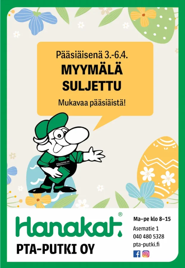Tags: HanakatPoikkeus aukioloajoissaPTA-Putki Oy